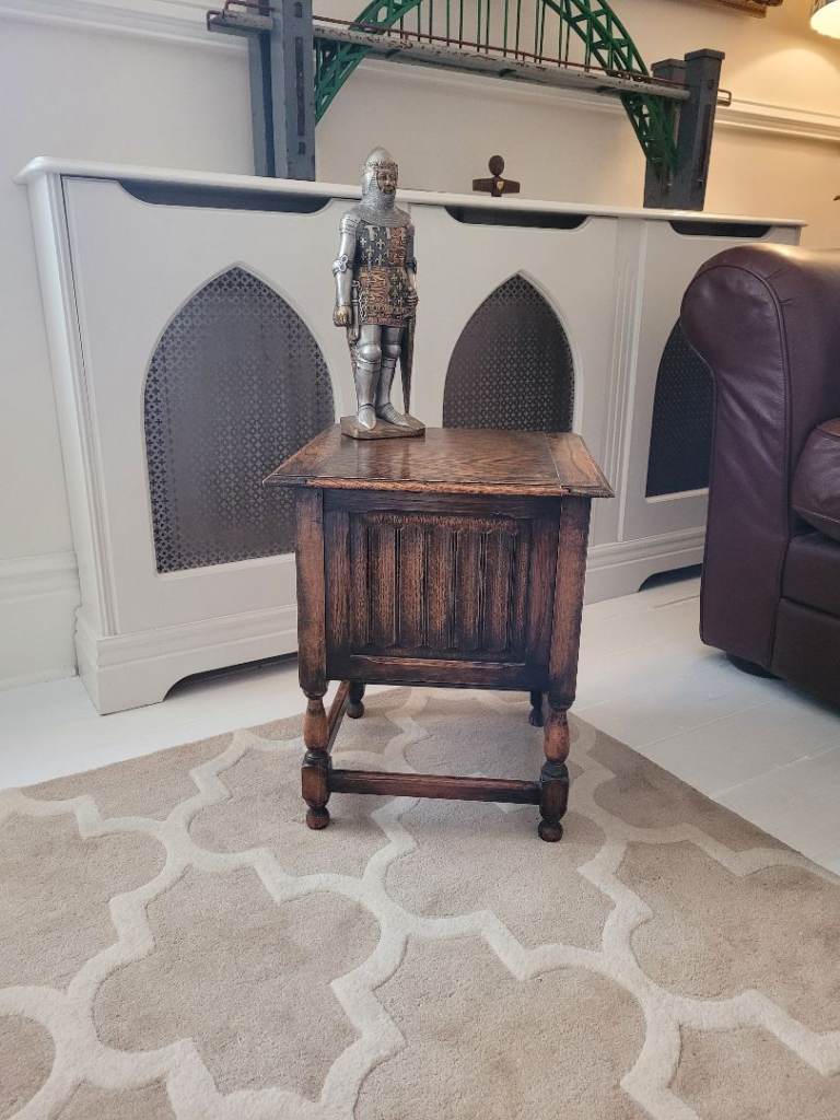 Lovely small Titchmarsh and Goodwin pipe/bedside cabinet Heavy sturdy item in very good condition lovely patina to the wood Top opens up ideal for storage 15 inches length 15 inches depth 18 inches height
