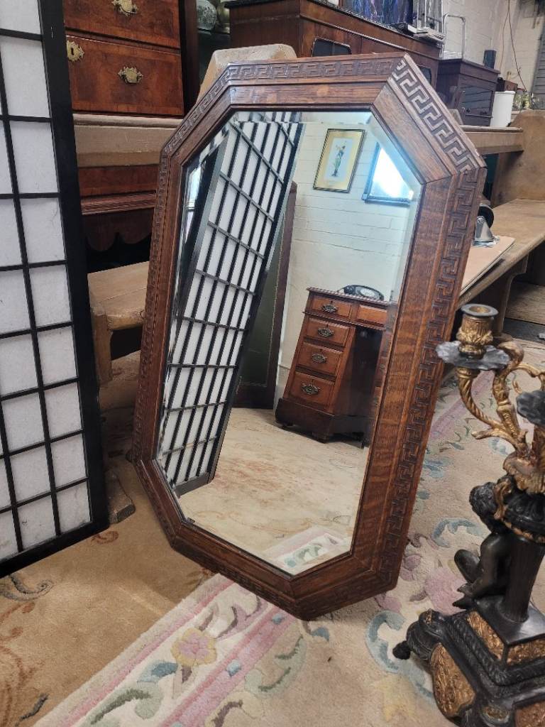 Stunning Edwardian solid oak octagonal mirror Heavy sturdy item in very good condition 33 x 21 inches