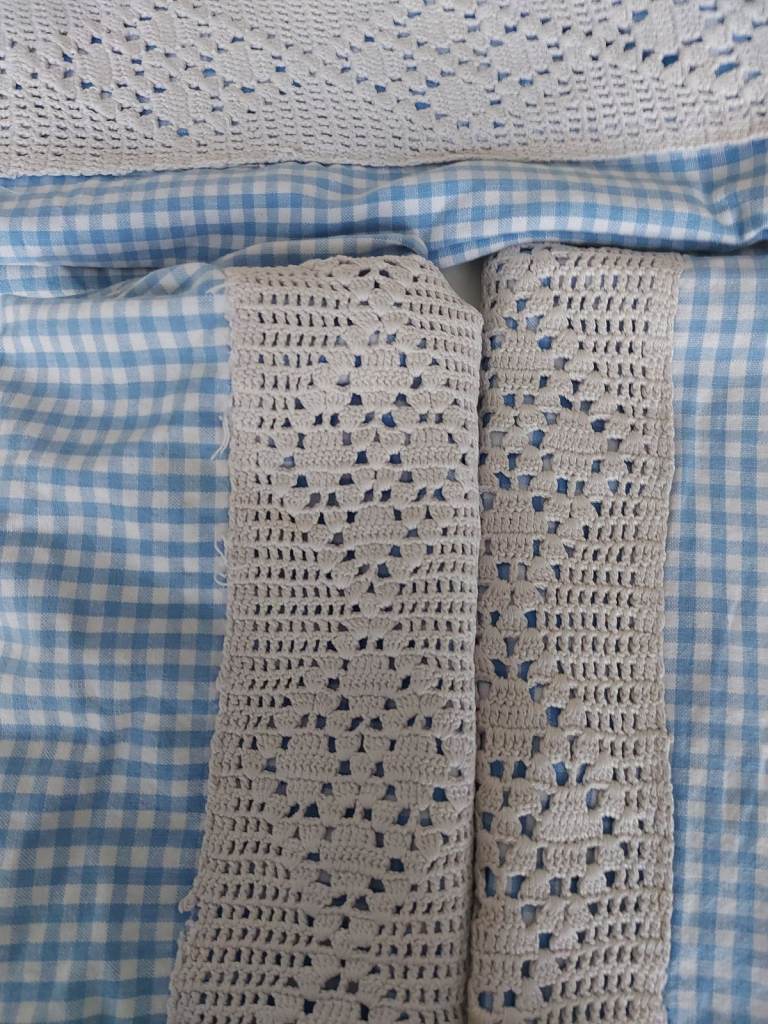 Sofa covers with crochet pattern on. In good condition. Cash and collection only. From pet and smoke free home.
