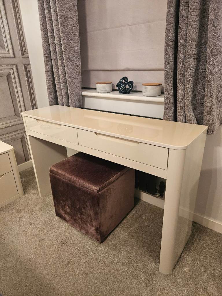 Next white gloss console table. Some damage on. Some sun damage on the top Dimensions approx D - 35cm W - 126.5cm H - 77.5cm From pet and smoke free home. Collection only Spennymoor.