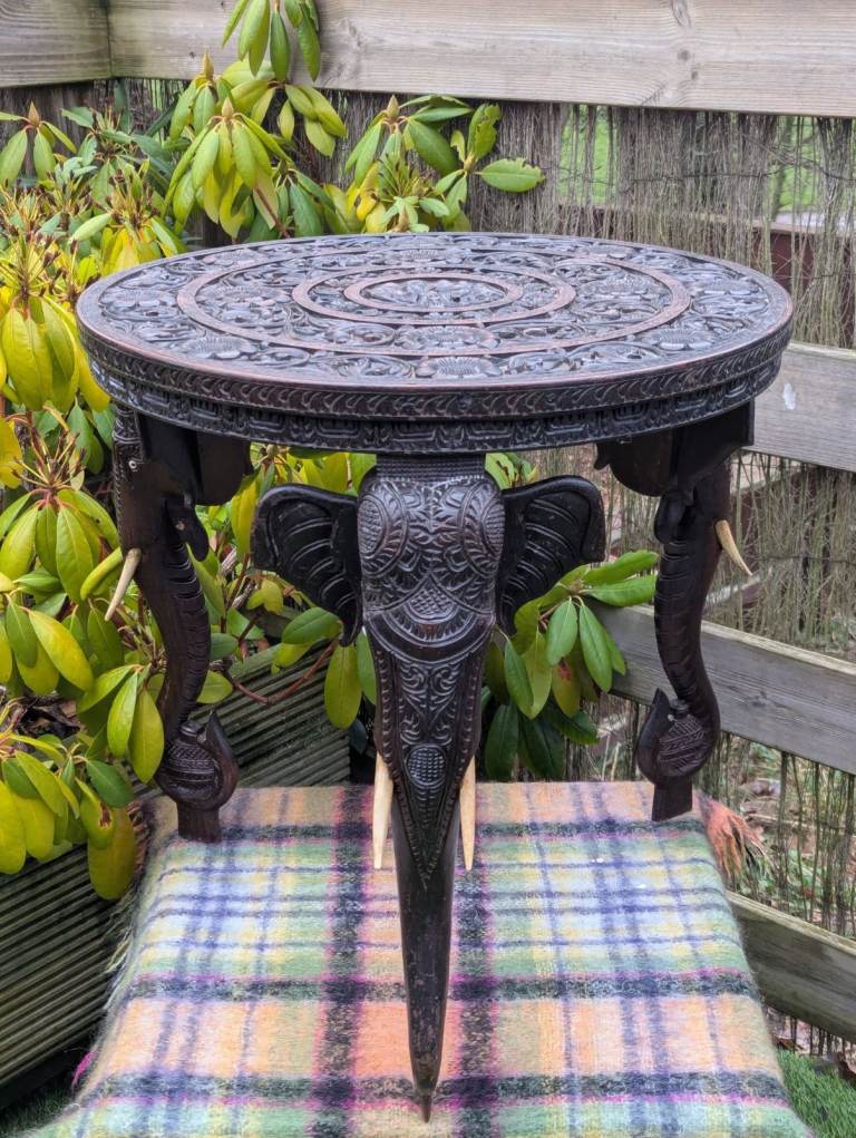 Anglo-Indian elephant side table, beautiful detail, decorative appeal, Indian hardwood, 23 inches diameter, 22 inches high, collection from Wolsingham or can arrange delivery for cost x