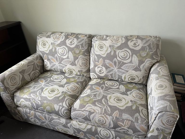 2 seater - Grey and flowery two seater sofa bed. Barely used. No marks. Good condition. Pull out bed all in fully good working order.