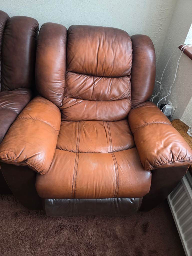3+2+1, 6 seater leather sofa set to sell with recliner feature. In a really good condition. Selling just because of no space in the house. Genuine and serious buyer only. Available for collection only!