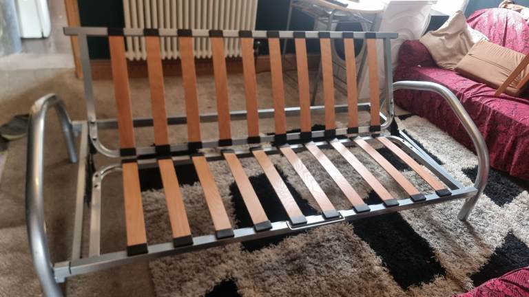 Excellent sofa bed,Nabru brand. Pulls out into small double as shown. Dismantled into pieces and has previously been transported in a Corsa. Sofa dimensions 180 x 100 cm. 180 x 220 when fully extended. There are YouTube videos on how to a
