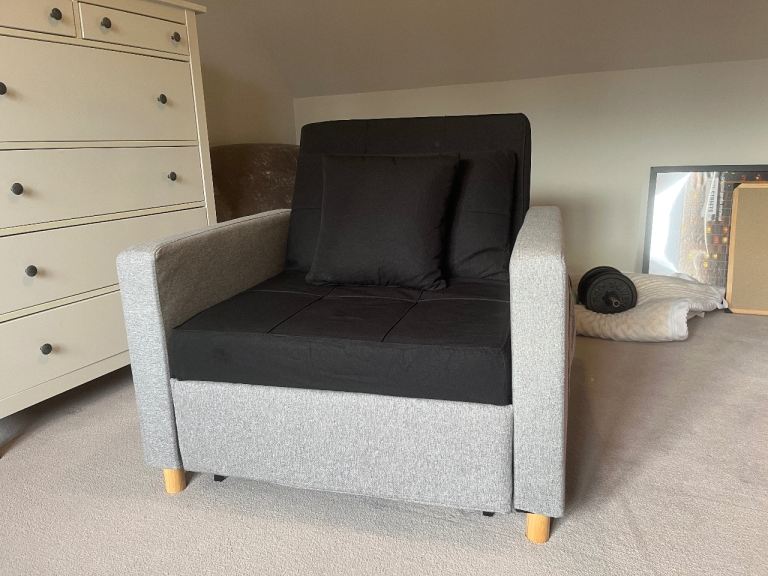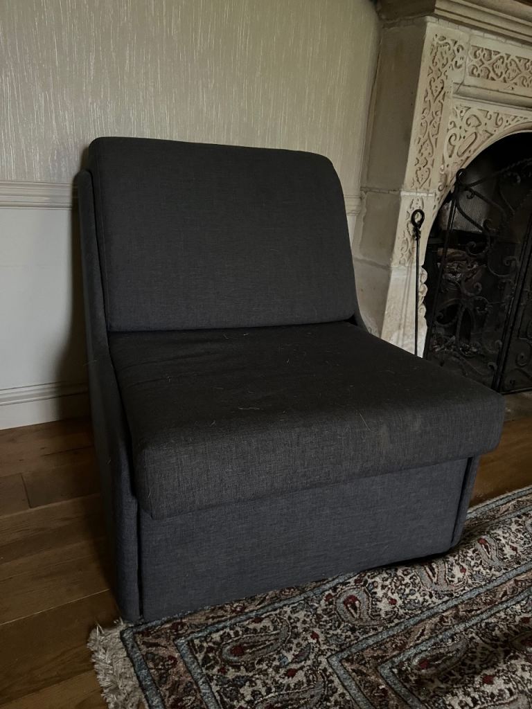 IKEA chair bed / single sofa bed in excellent condition. Clean, well maintained and hardly used. Easily converts from a comfortable chair into a single bed – ideal for guests, small spaces, or studio flats. No damage, from a smoke-free home.