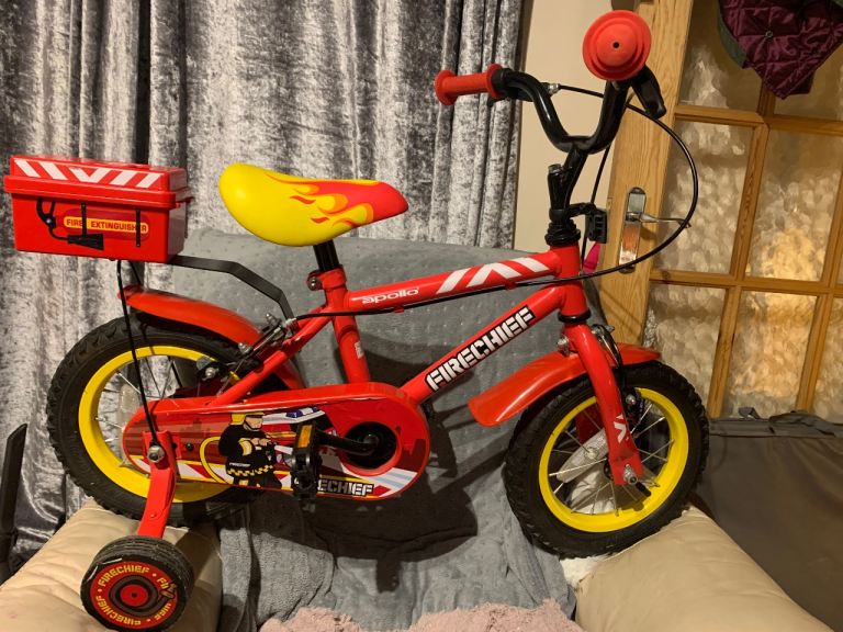 Apollo Firechief Kids Bike - 12" Wheel. Purchased in the summer but only used a few occasions as was too small unfortunately. Make a nice Christmas gift has special puncture proof tyres fitted at an additional cost. Pick up LENZIE area