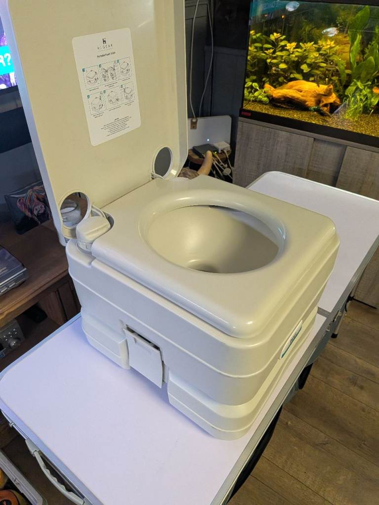 Higear portable toilet Bought last year for the campervan and used for 1 night Splits in two for emptying and cleaning Now have a caravan so this isn't needed £20