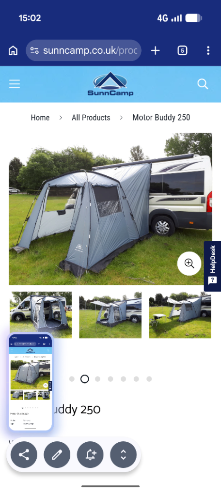 Sunncamp motorbuddy 250 campervan awning Used for 1 week doing the nc500 Excellent awning in excellent condition ,250cmsx250cms £100