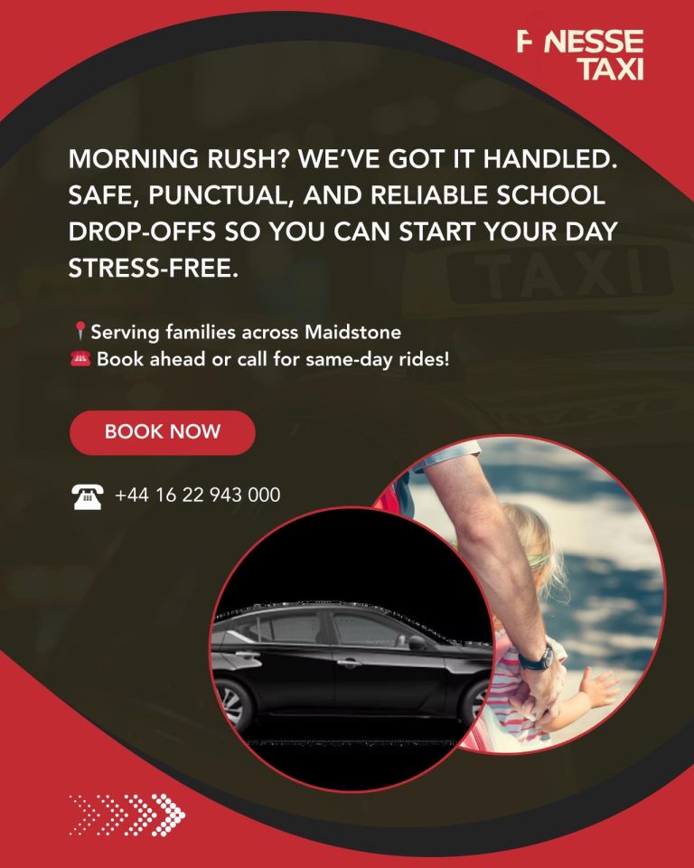 Finesse Taxi combines cutting-edge technology with personal service to redefine travel in Maidstone and throughout Kent. Whether you need a local ride, school drop-off, large group booking (6-8 seater), or luxury airport transfers, we provide seamles