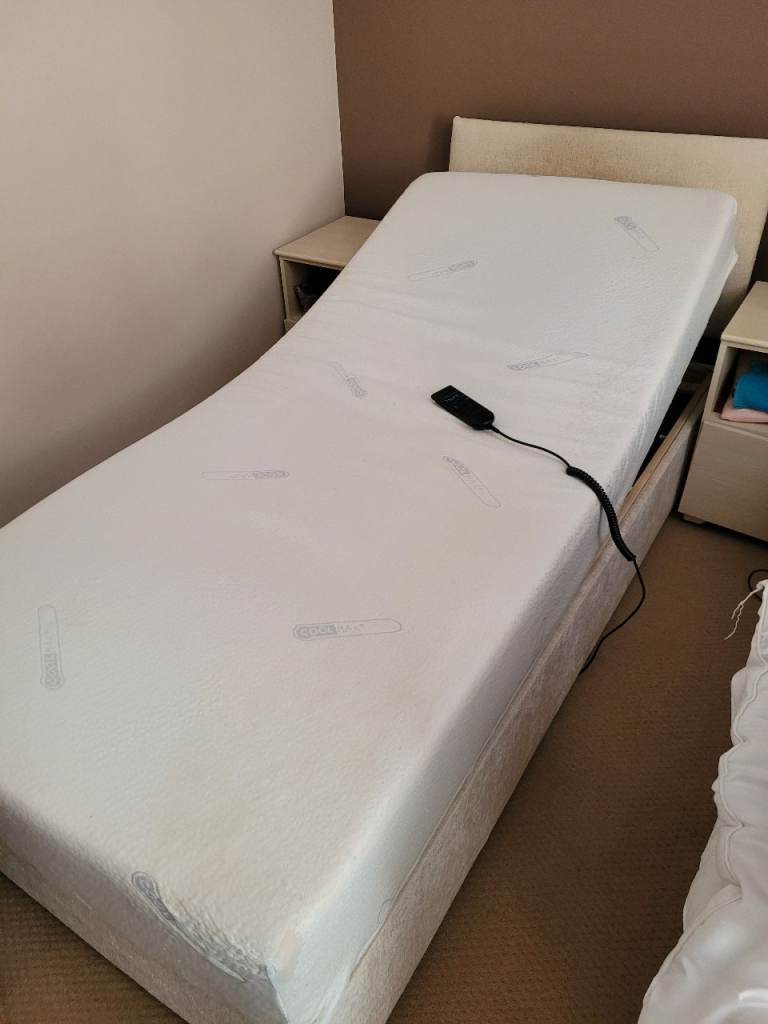 Two full adjustable continental orthopaedic beds with mattresses. Can be joined to make a super king size bed. Two drawers in each bed. £200 the pair.