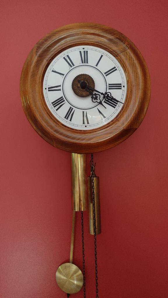 Antique clock known as a "Wag on the Wall" In working order. Good condition.