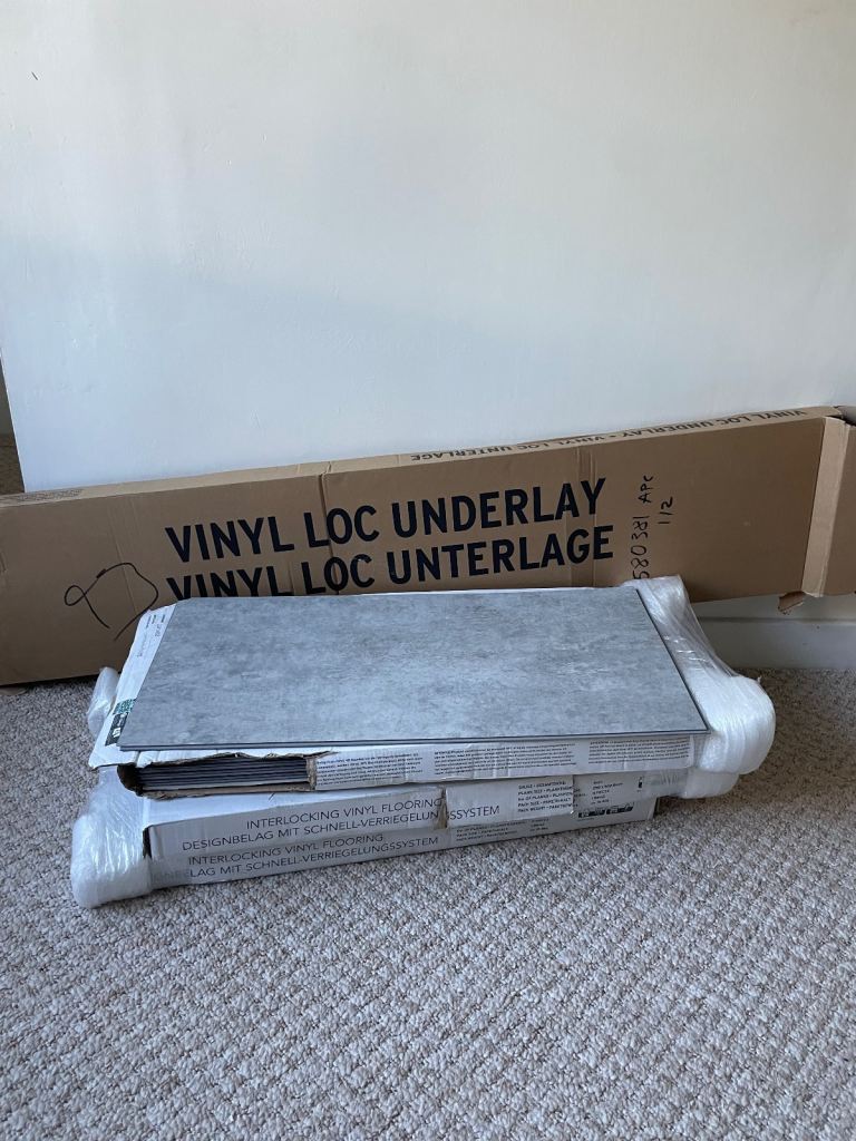 Quick step vinyl flooring left over from new bathroom 2 full strips and 2 parts making just over 1 strip so approx 1.25 sq m left Perfect for small shower room or toilet project. Also have part roll of underlay to go with