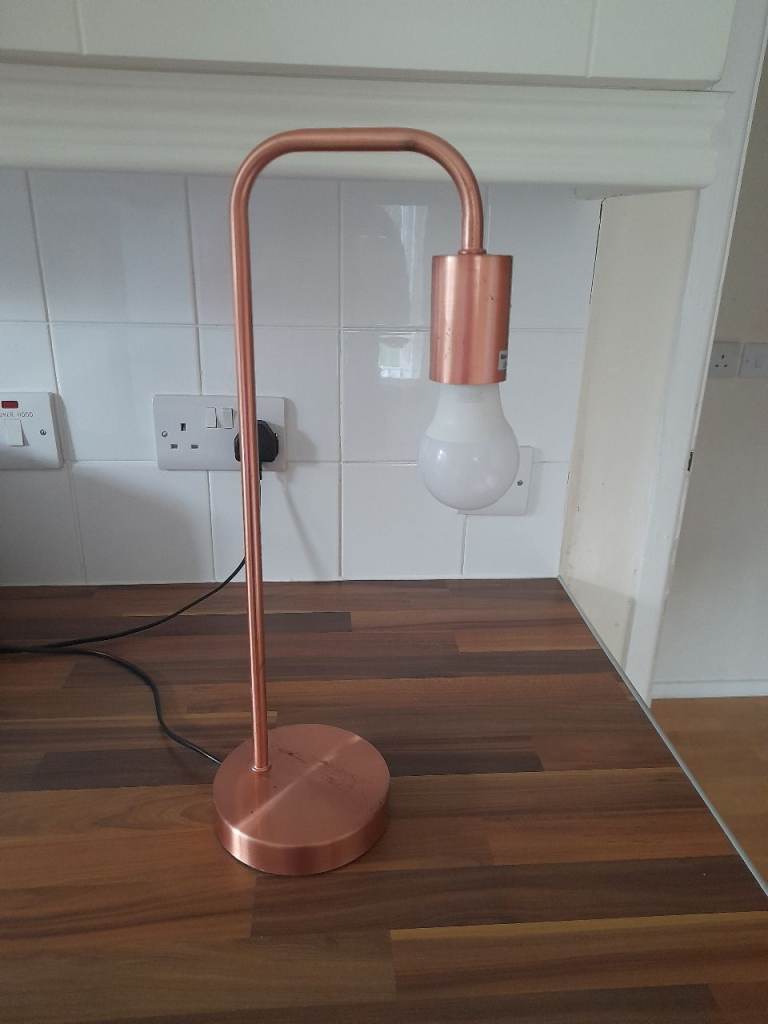 Habitat industrial style lamp, excellent condition. Comes with new bulb. Looks better with the industrial style bauble bulb but I couldn't find any new. Copper colour.