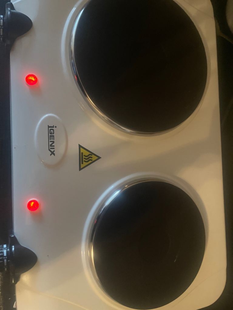New double electric hot plate which can be used for the outdoors and as temporary use in an emergency. Packaging is damaged. Checked works perfectly fine. The hob is specifically designed for use with electric fuel, making it perfect for those who wa