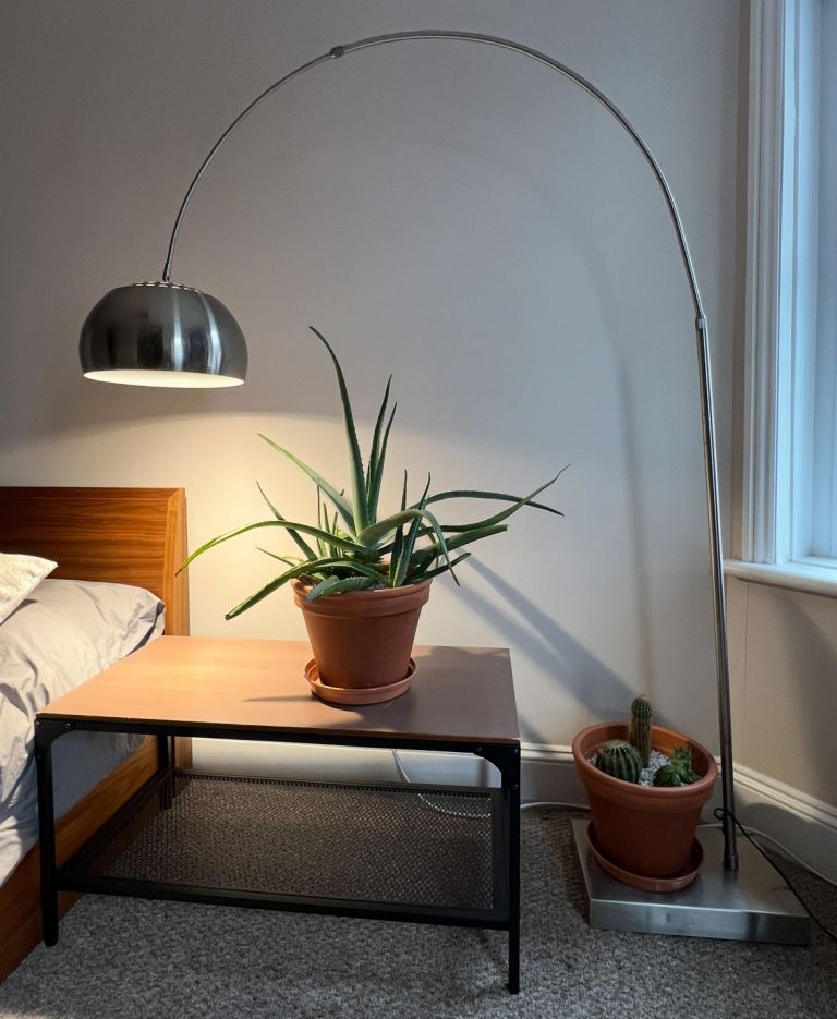 Stainless steel, modern floor lamp. In very good condition with only a few blemishes or signs of wear. Has been looked after well. Selling as downsizing furniture. This is a retro, classic design. Heavy, sturdy base with adjustable length o