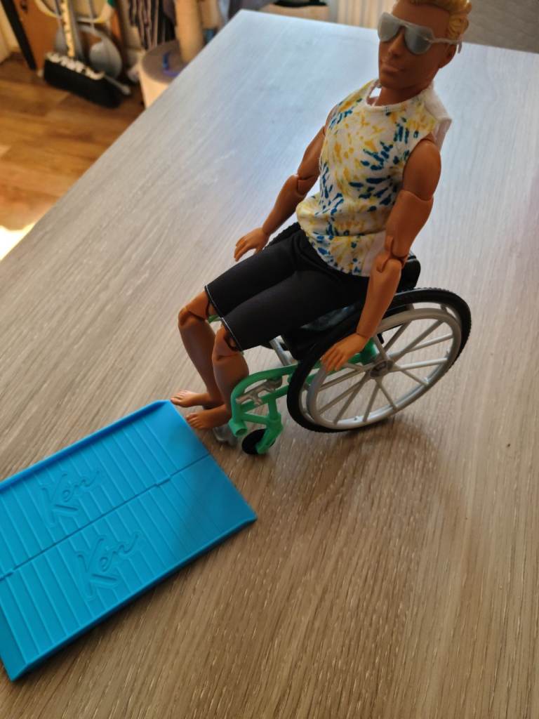 I am selling this Ken in a wheelchair with ramp, which is in good used condition