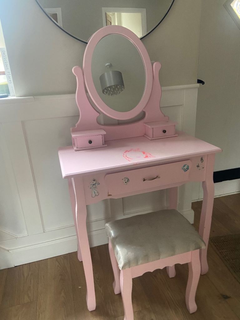 Lots of pens marks but too good to chuck - l in j dressing table with stool. FREE