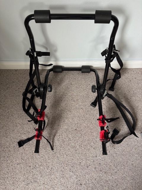 Shield Autocare 2 bike carrier with adjustable positioning. Folds flat and can be boxed for easy storage (as in photographs). Easy to assemble and with protective rubber absorbers.