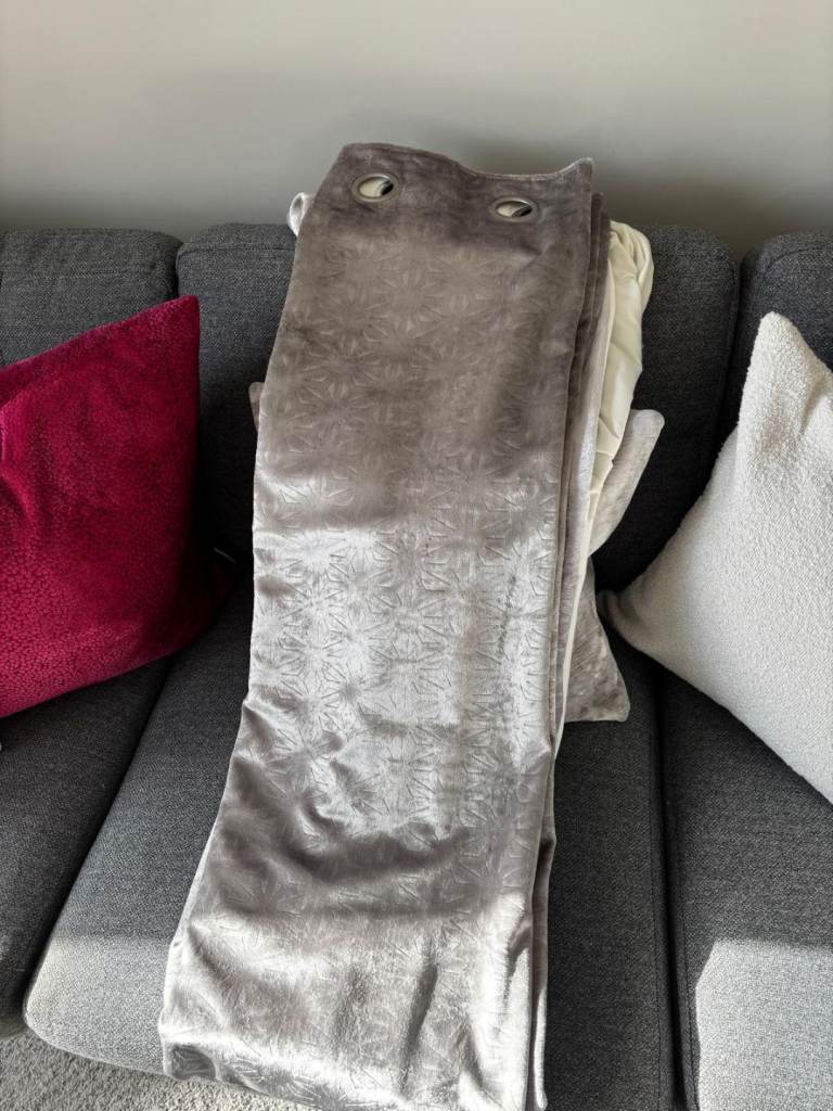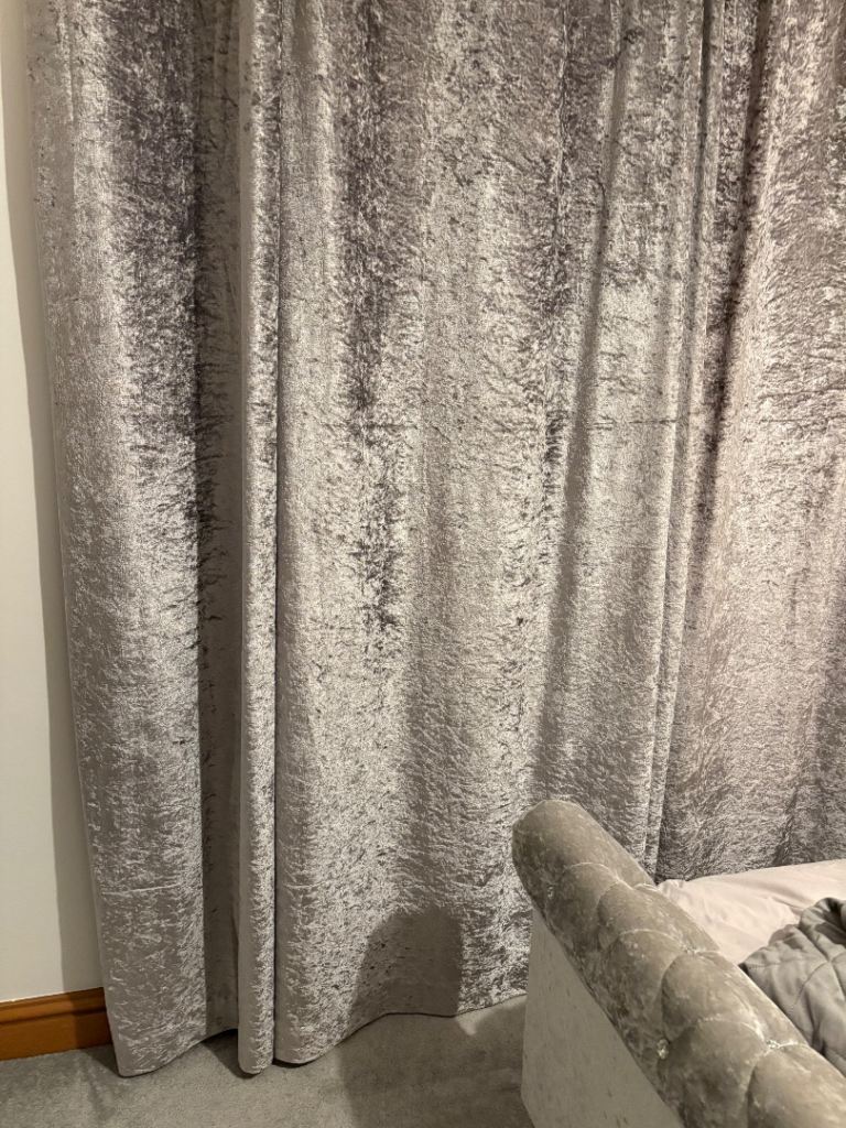 Silver crushed velvet eyelet curtains Size 90x90 Fully lined Excellent condition