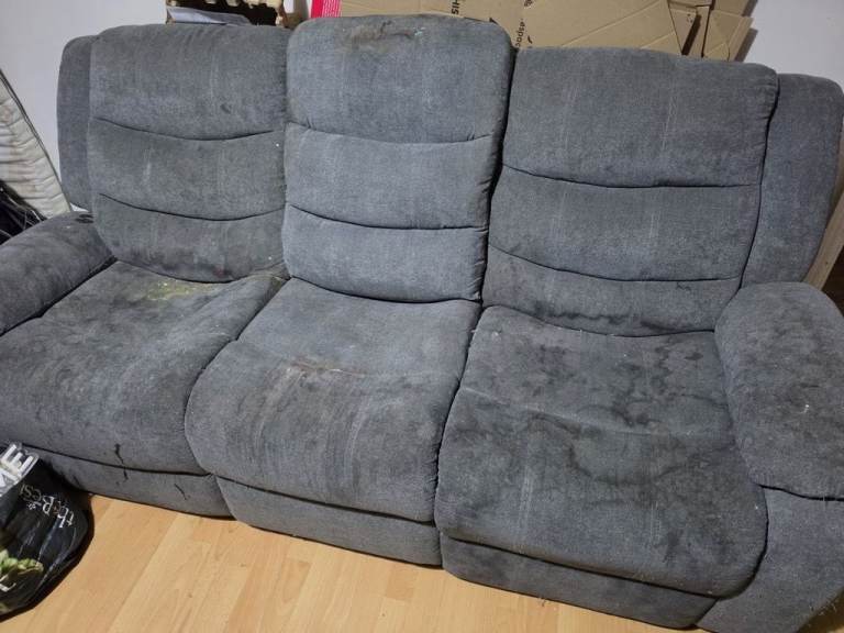 Hi, I have two sofa sets which were left behind. They need a deep clean as you can see. They are free. North Chadderton area, near Elk Mil Oldham. NO time wasters. NO delivery, collection only.