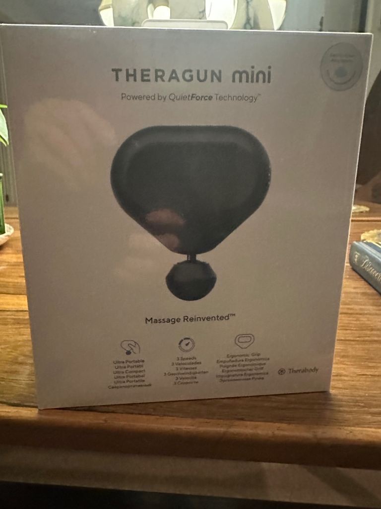This massage gun new with box and very handy to use. It has a different speed setting and can be easily recharge.