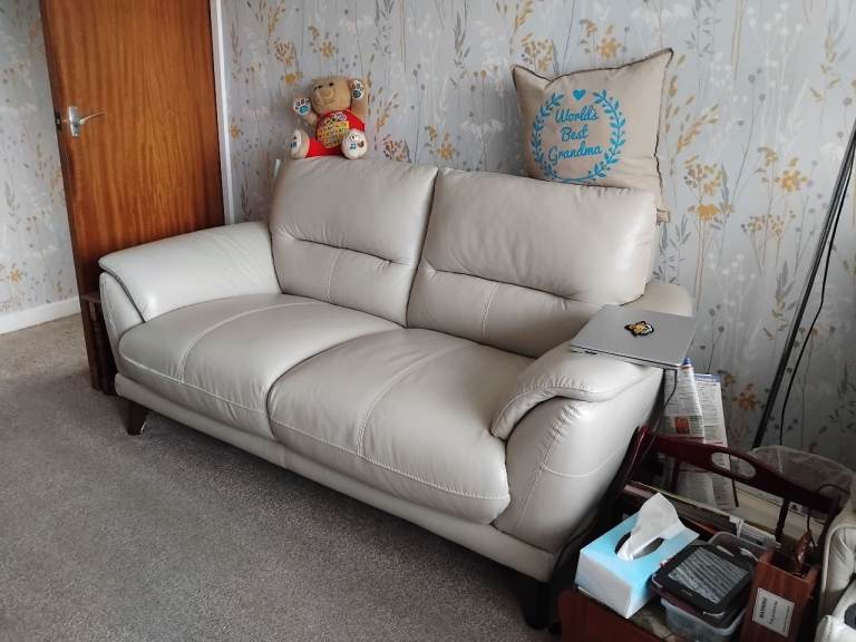 THE SOFA HAS HAD ONLY ONE OWNER AND VERY WELL LOOKED AFTER,VERY COMFORTABLE, AND RARELY USED ,SPACE NEEDED HENCE THE BARGAIN PRICE.