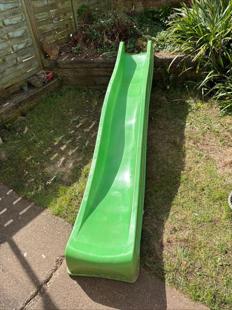 Climbing frame parts from Fatmoose climbing frame Including 2.9m slide, monkey bar handles, climbing net which has been cut, climbing wall grab handles