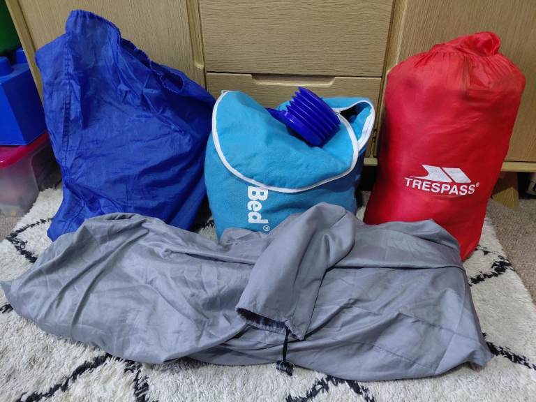 phone calls on;ly please (no texts or offers please)_ 4 piece Camping Set Good clean condition includes 2 Sleeping Bags ( 1 adult Trespass brand + 1 Kids star wars) 2 x Inflatable Beds Adults Size (1 with cover) + Pump buyer collects BH