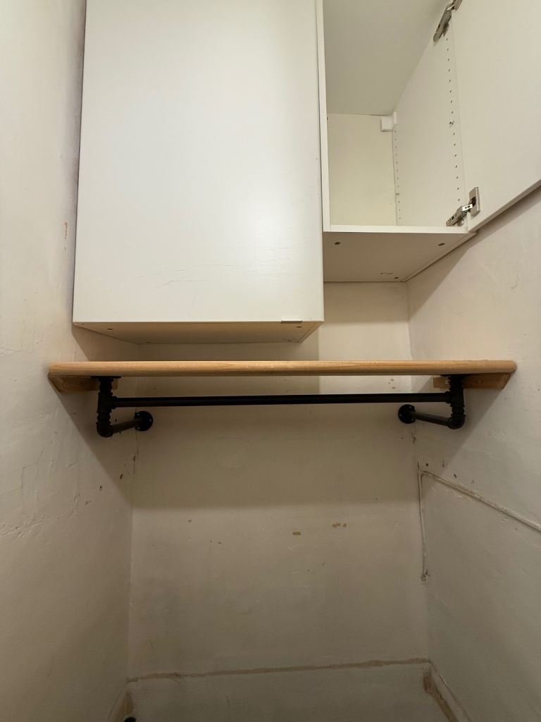 Industrial style clothing rack. 100cm wide. Distance from wall: 25cm Flange: 8.5cm Shelf included Pick up Marchmont