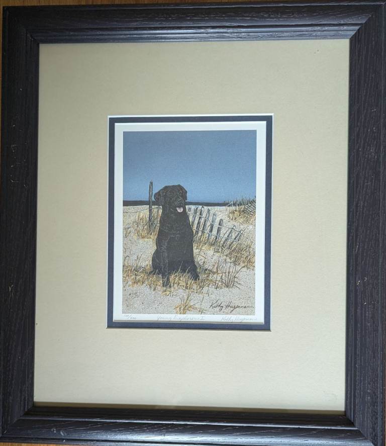 Two limited edition framed prints of Labrador dogs by well-known artist Kathy Hagerman. £6 each or £10 for the pair Measurements: 34cm x 40cm (13 inches x 16 inches). Each picture is of the same size.