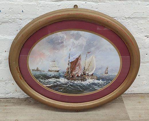 Antique seascape original oil painting by Thomas Wilson. Has been recently re-framed in a nice gold and red painted oval frame with a glass front. Excellent condition W56cm D3cm H46cm Please Note: This item is located in Falkirk for a
