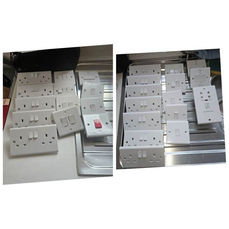 6 x 13A 2 gang plug sockets. Second hand but in excellent condition, apart from one slightly cracked as seen on image. All require 25mm Back Boxes. SAS
