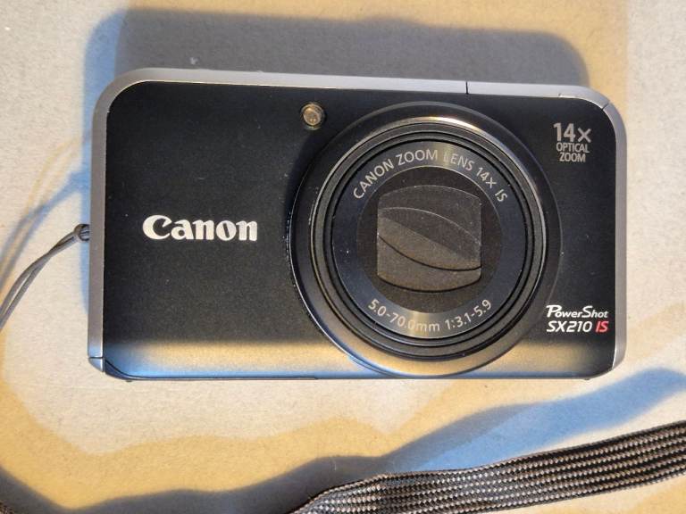 A VINTAGE Canon PowerShot SX210 IS 14.1MP Digital Camera with 14x Wide-Angle Optical Image-Stabilised Zoom, 3.0-Inch LCD, and 720p HD Video A lightweight, reliable compact bridge camera ideal for travel, family photos and everyday use. The Canon Po