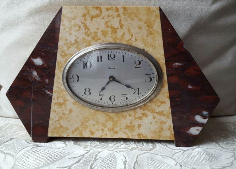 This is a 8 Days Clock made in France. The clock does not work but it can be used as a decorative ornament. The clock weight - 5 Kilos Measurements -20cm High -32cm Large -10cm Width The clock screen