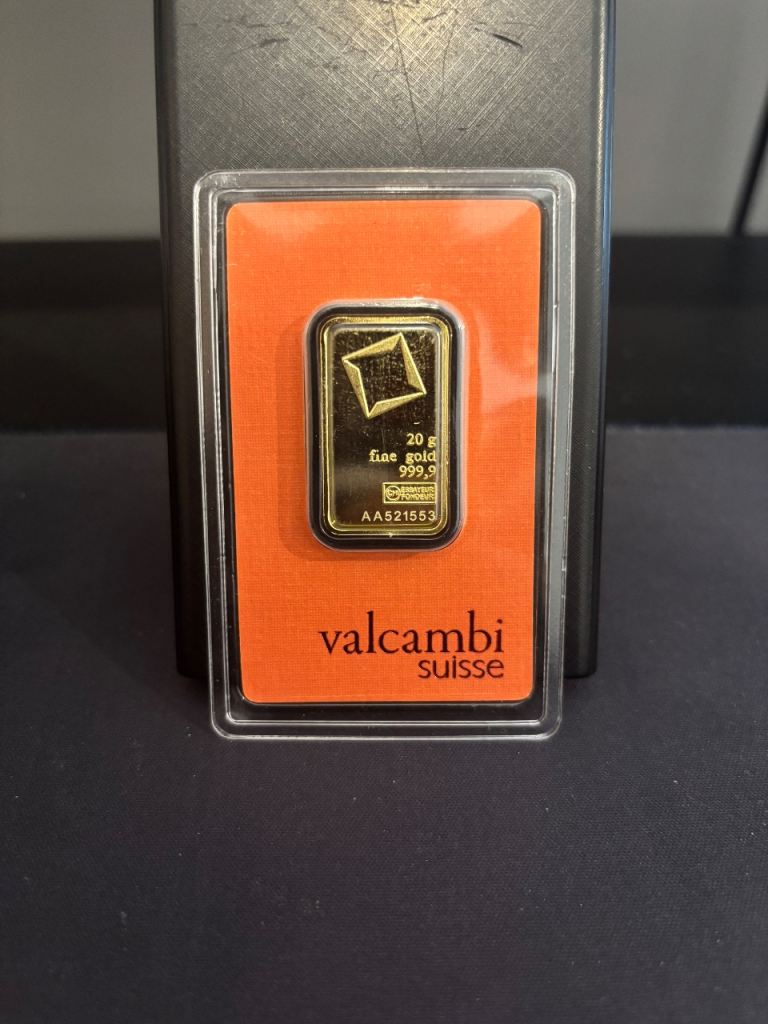 Selling a genuine 20g gold bar from Valcambi Suisse, one of the world’s most respected Swiss precious-metal refineries. The bar is 99.99% pure gold (24K) and comes sealed in its original assay packaging with matching serial number and certificate. I