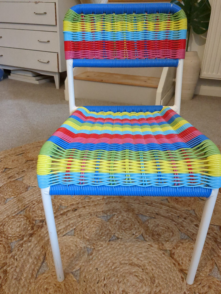 Rainbow rattan. In very good condition still. Currently selling in IKEA for £17. Some slight scratches on the legs. From smoke and pet free home.