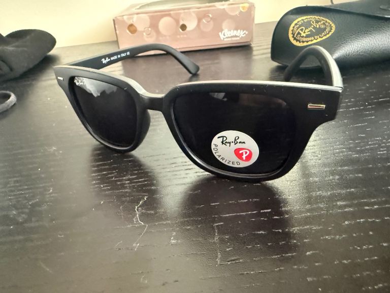 These are a brand new pair of black men's Ray-Ban sunglasses, never been worn. Still in new condition, with no marks or scratches whatsoever on the frames or lenses. They come with the original Ray-Ban case and cleaning cloth. Model number RB8377, gr