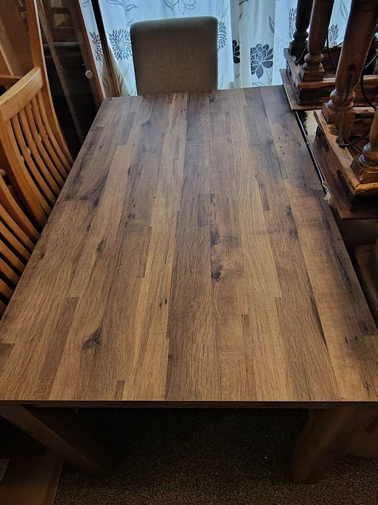 Lovely Heavy Solid Wood Set . Two Master Chairs, Four Side Chairs. Four Solid Wood Draws. Table 190cm x 110cm Can deliver free local or ££s for distance. Welcome to view anytime with no obligation.