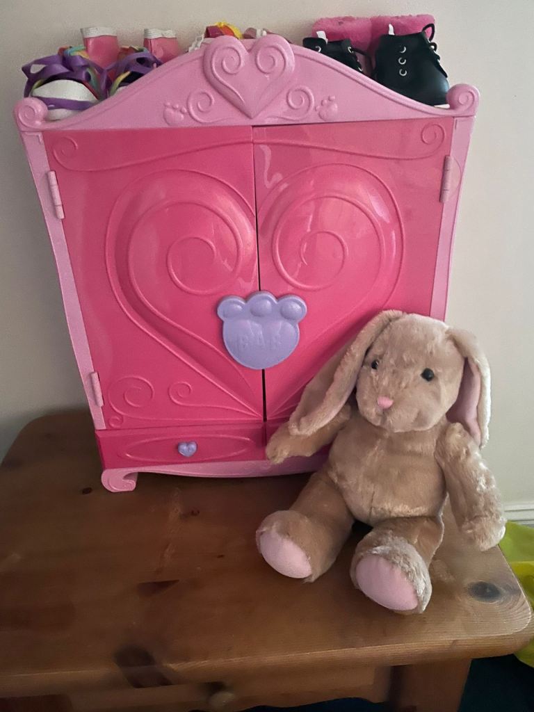 Build a Bear collection including bear, wardrobe and numerous outfits complete as per photographs. Excellent condition and an absolute bargain for a present.