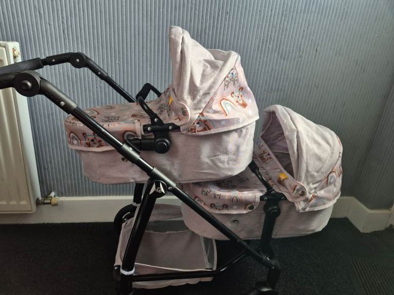iCandy pram and carrycot, and double buggy with 30+ configurations (using adapters and with car seat). Used but in excellent condition with any minor wear and tear shown in pictures. Collection only.