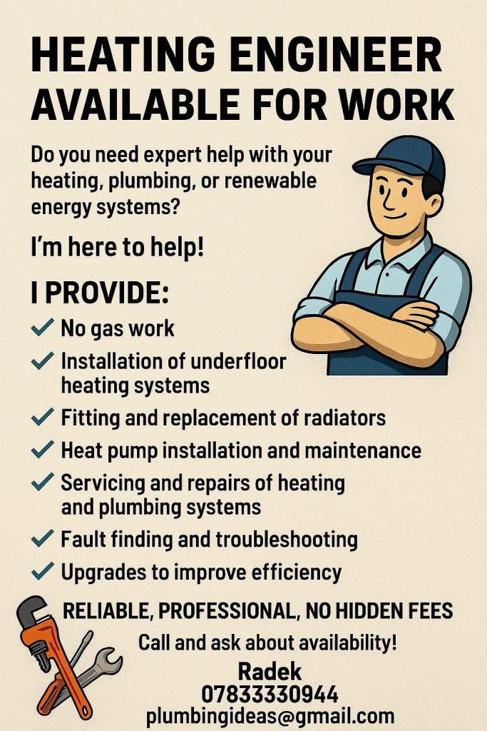 Plumbing and Heating Engineer, No Gas workUphall, West LothianPlumbingCentral Heating System Installation & ReplacementGeneral PlumbingPlumbing Pipe RepairRequest a quote