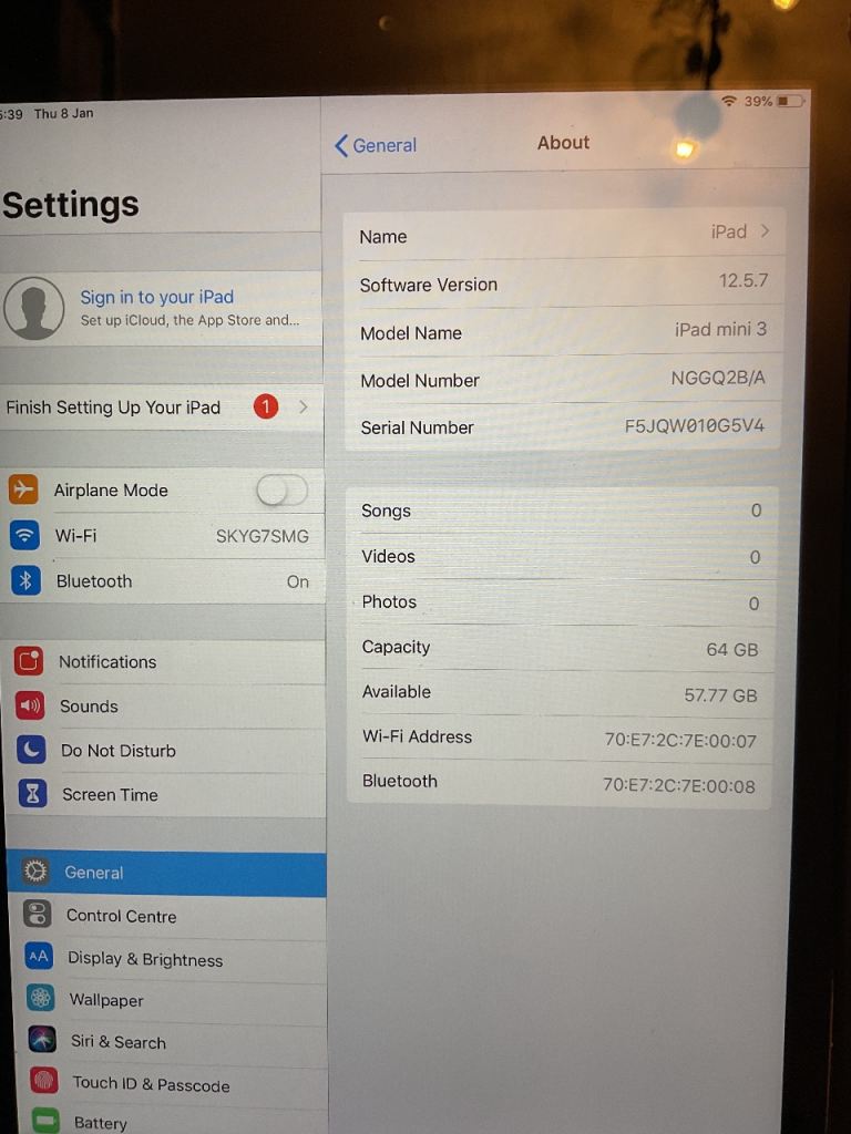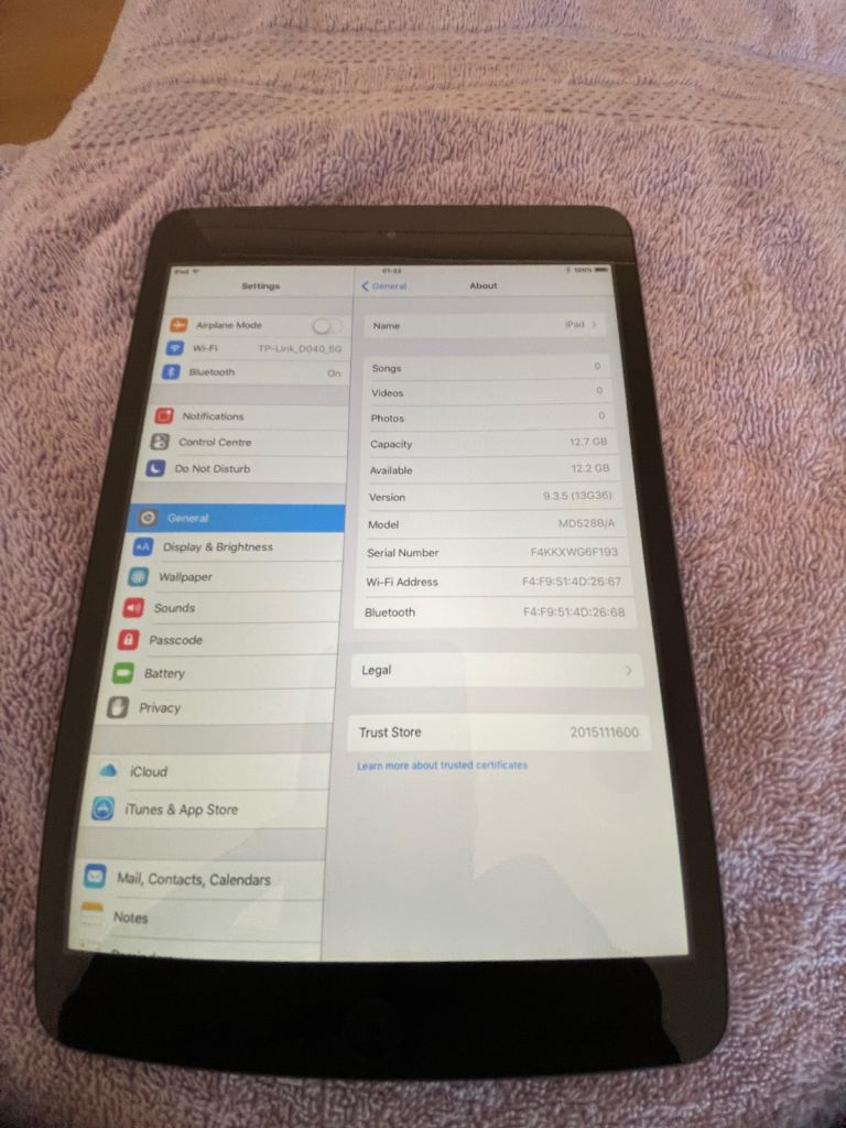 iPad mini 3 with charger and cover. Has crack right hand top as per photo. This does not affect the working of the iPad. Worked just fine and will do someone a turn. Byer picks up from Glasgow East, I am opened to offers. Sold pending uplift tomo