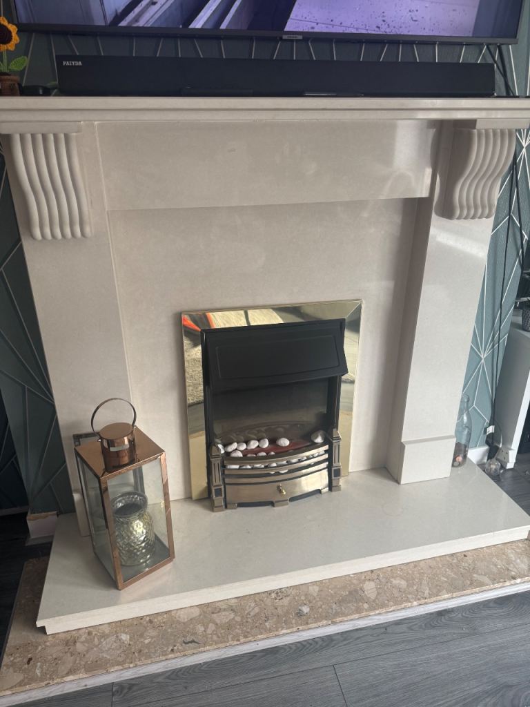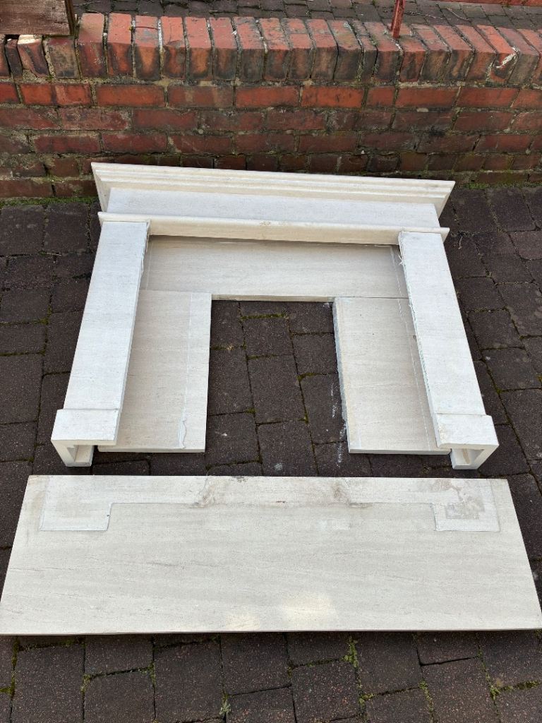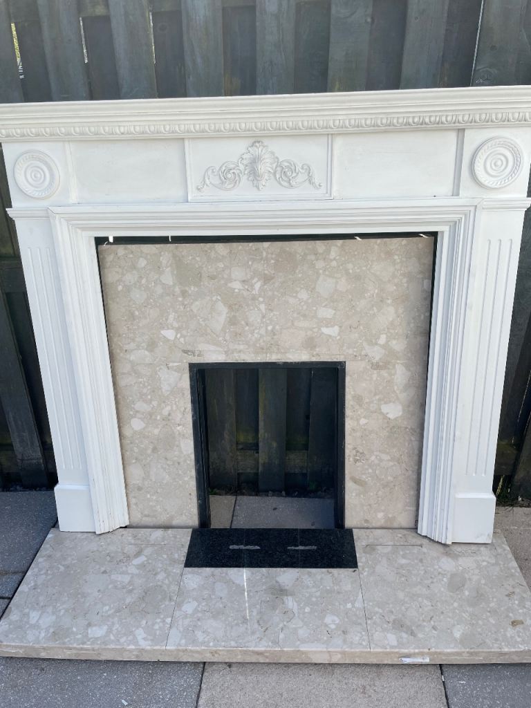 2nd hand white fireplace surround with marble insert and hearth. Only needs picked up.