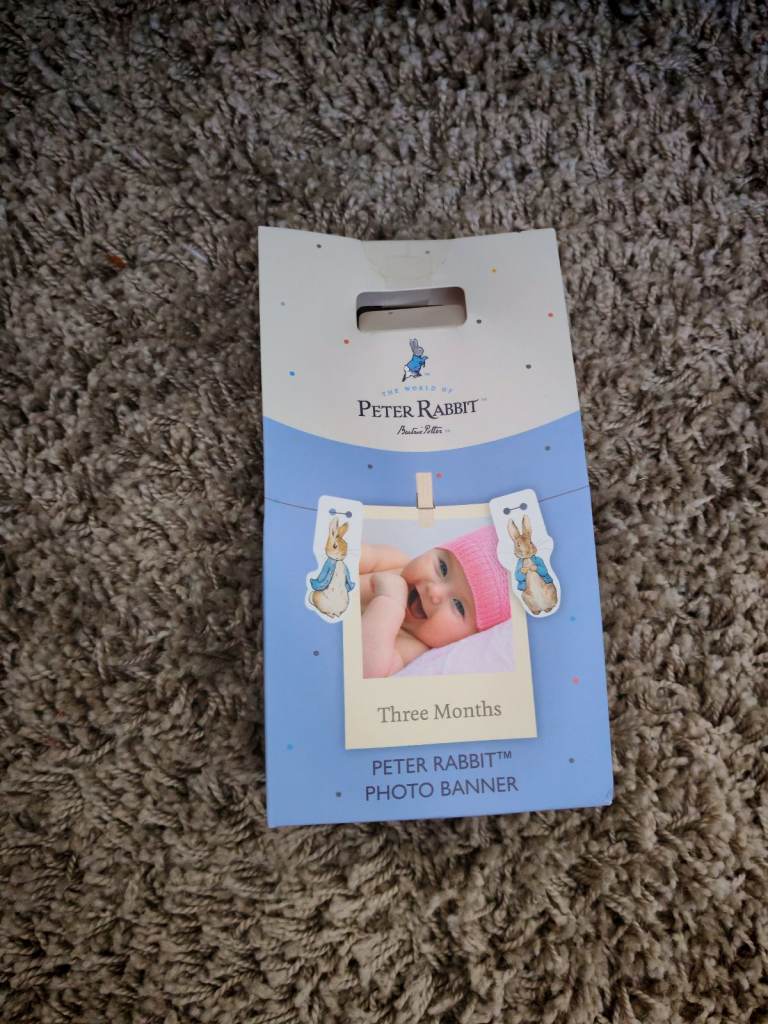 Adorable Peter Rabbit photo banner to capture your little one's precious first year! Brand New. Still in original packaging #petterrabbit #photobanner