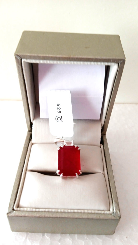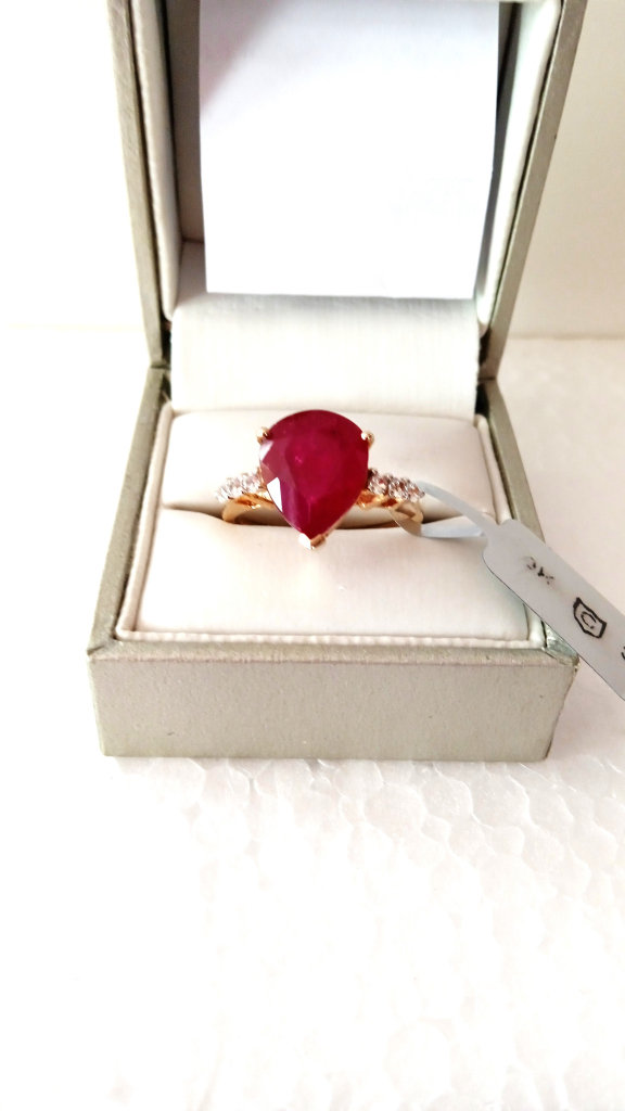 9CT GOLD SOLITAIRE RING SIZE O Ruby Grade AA Ruby 12X10 Pear Cut 56 Diamonds Ring NEW