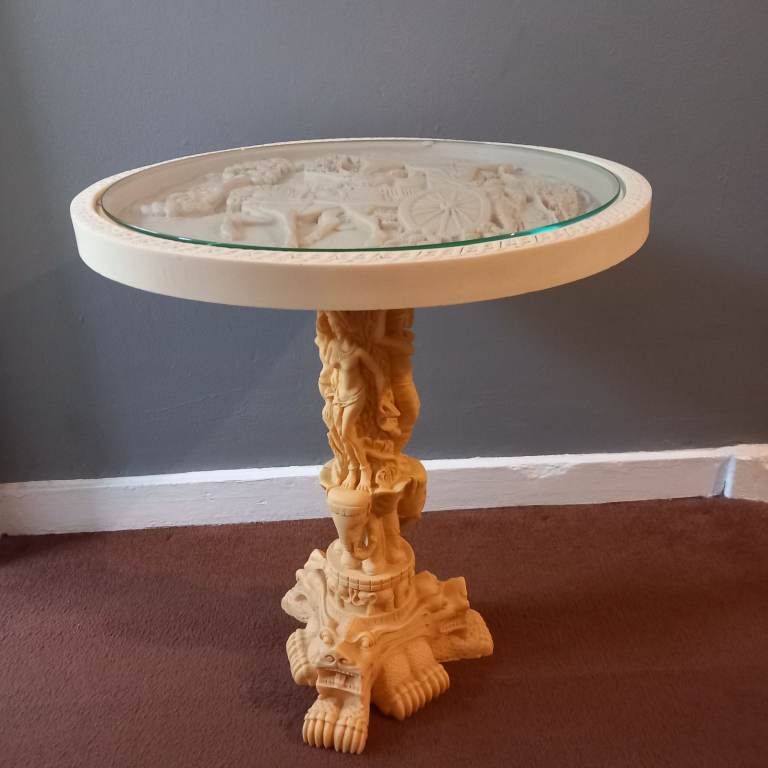 Rare Vintage 1960s Dragon Asian Side Table – Oriental Carvings, Glass Top