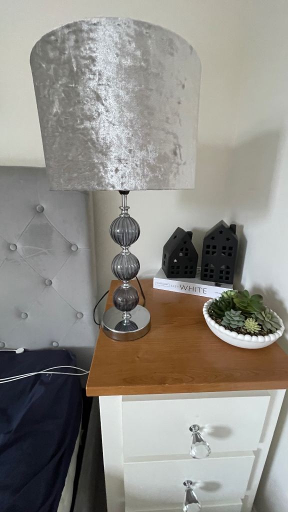 Table lamp with velvet silver shade Very good condition