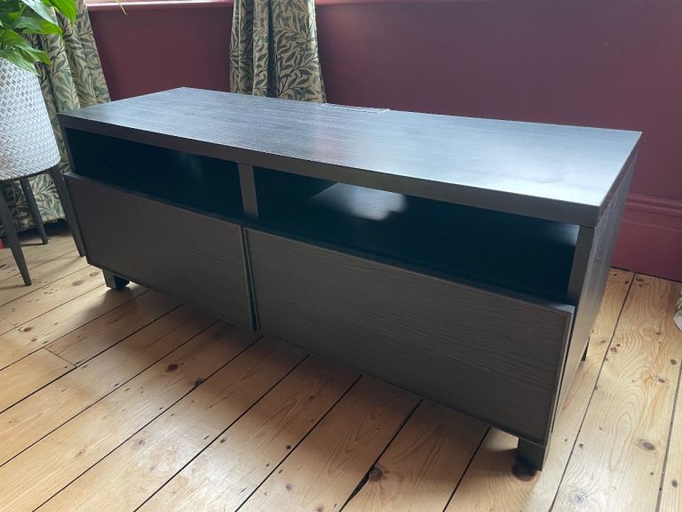 Up for sale is my IKEA BESTA TV stand Dimensions: 120cm (w) x 50cm (h) x 40cm (d) Sturdy and solid construction, typical of IKEA’s BESTA range Easy to disassemble, making collection and transport simple Some general wear and tear consistent with