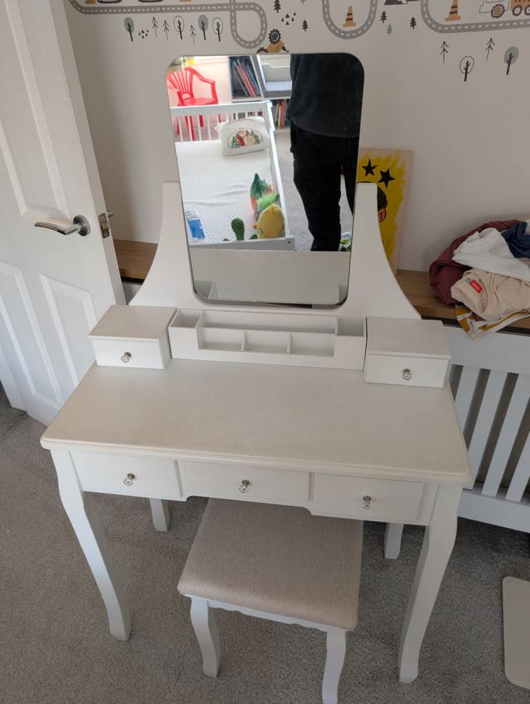 White ikea dressing table with glass top. Ok condition. Has scuff marks / scratches on FREE collect only