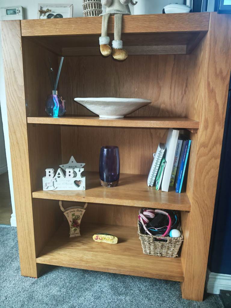 Living room furniture TV unit, nest of table, bookcase/ storage unit Bookcase L90cm, D40cm, H120cm TV unit L110cm, D45cm, H49,5cm Smaller table L45cm, D41,5cm, H43cm Bigger table L60cm, D45cm, H50cm Collection only from Smithton